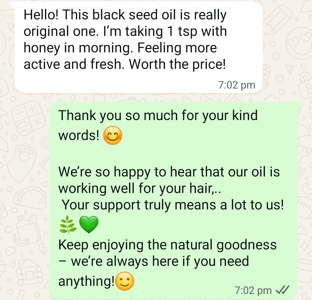Experience the ancient power of Black Cumin Seeds with HUDA NATURE'S 100% Pure, Cold-Pressed, Virgin & Unrefined Black Seed Oil. Sourced from organically grown black cumin (Nigella sativa), this oil is rich in essential nutrients that promote overall wellness.